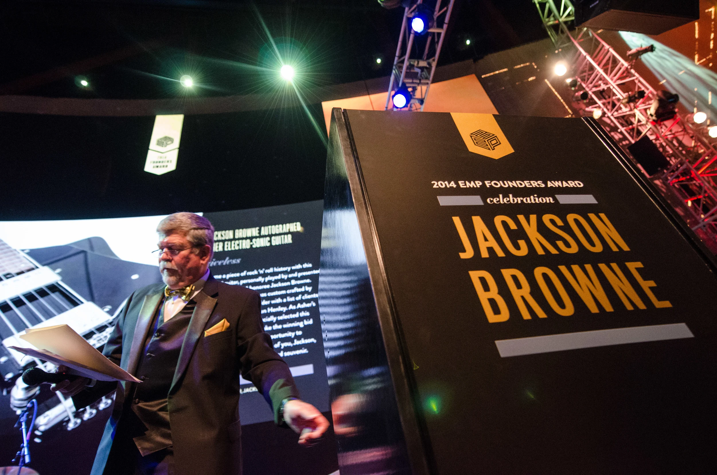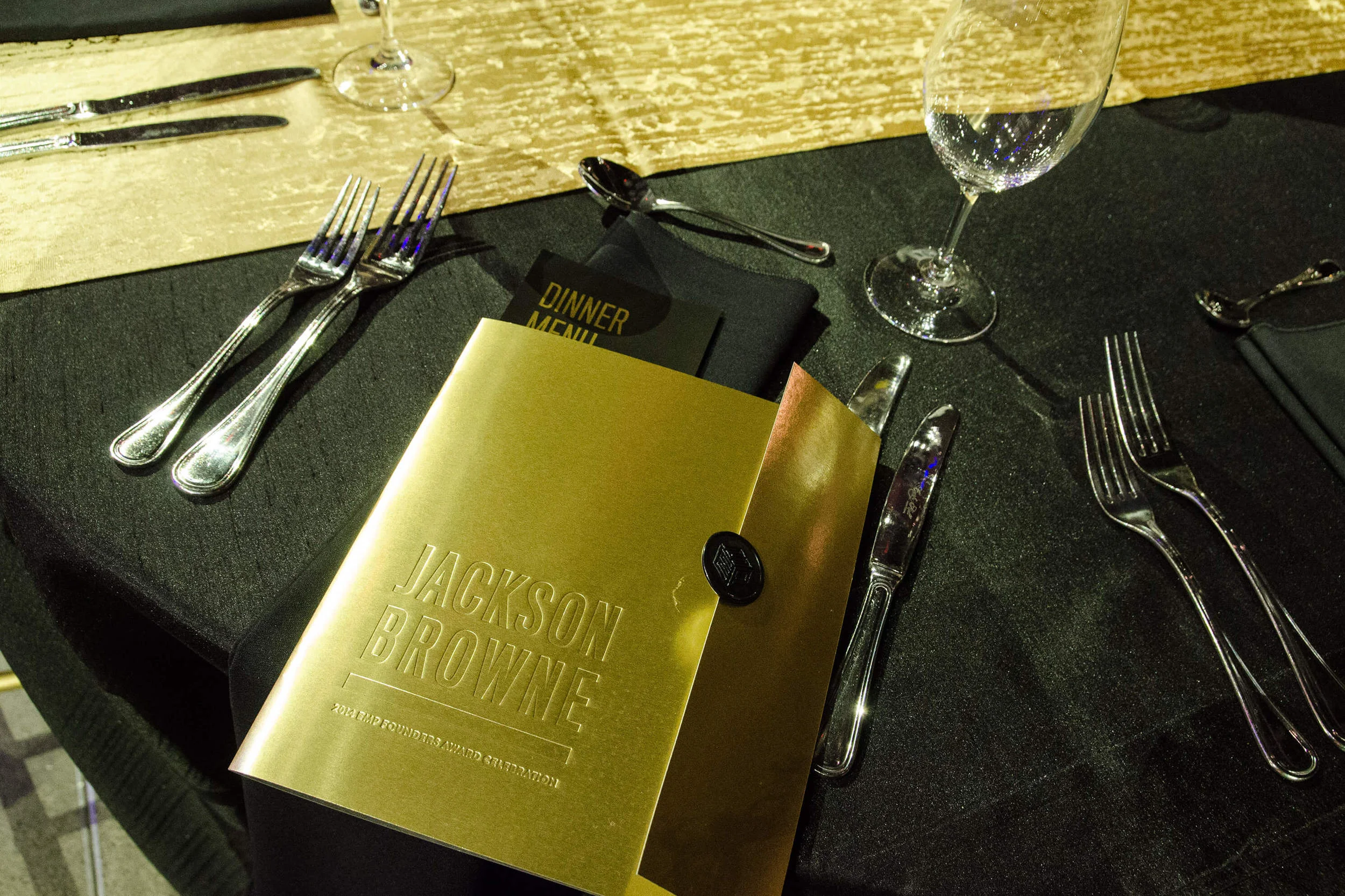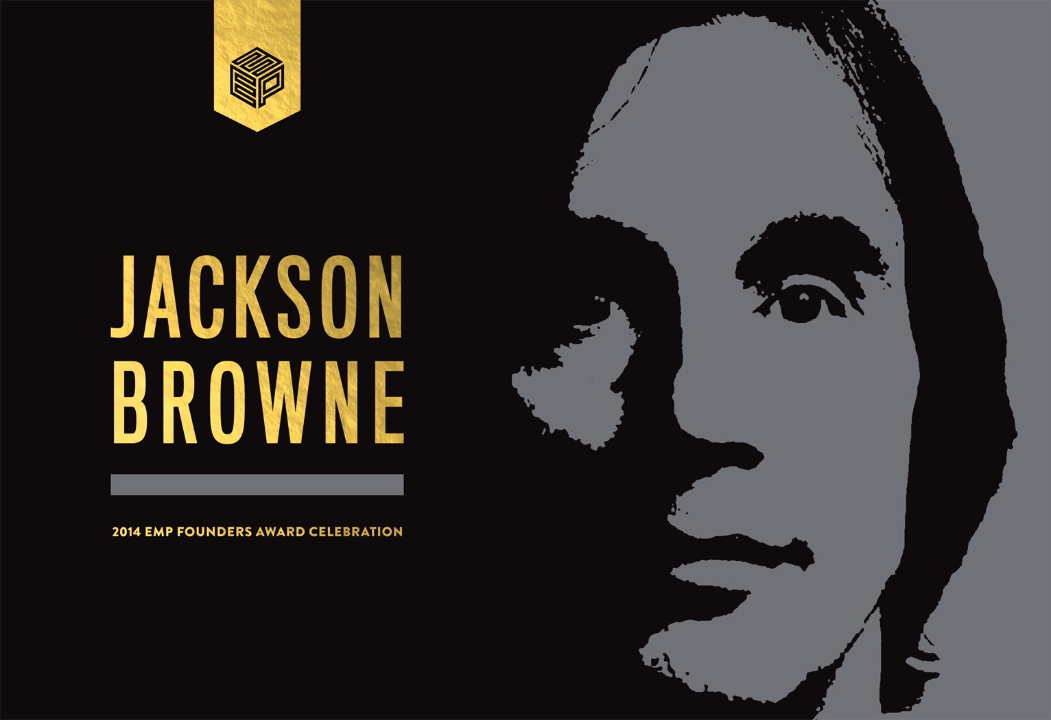 Founders Award is an annual fundraiser to benefit EMP's youth programs. The fundraiser features legendary performers who have made substantial contributions to the field of music such as Billy Cox, Crosby, Stills & Nash, Buddy Guy, and Carlos Santana to name a few. Since its inception in 2007, the gala has raised more than $2.6 million in support of vital youth development programming. In 2014, EMP honored American singer-songwriter and musician Jackson Browne. Project Goals: The Founders Award is an elegant gala that calls for a sophisticated, sleek, and bold design. Founders Award has an extensive amount of collateral needs from invitations to the evening program and dinner menus, to auction paddles and digital auction screens. I wanted each piece to feel unique and special, yet still part of a cohesive gala identity. These choices in print affect the look and feel of the event with regards to linens, table decor, etc. Execution: I chose a dramatic, high-contrast color palette of black, white, gray, and metallic gold for a classy, timeless look. I kept the fonts and the overall design aesthetic fairly tradition and subdued, instead letting the paper choices and various printing techniques (foils, etc.) carry the weight of — and elevate — the overall design.