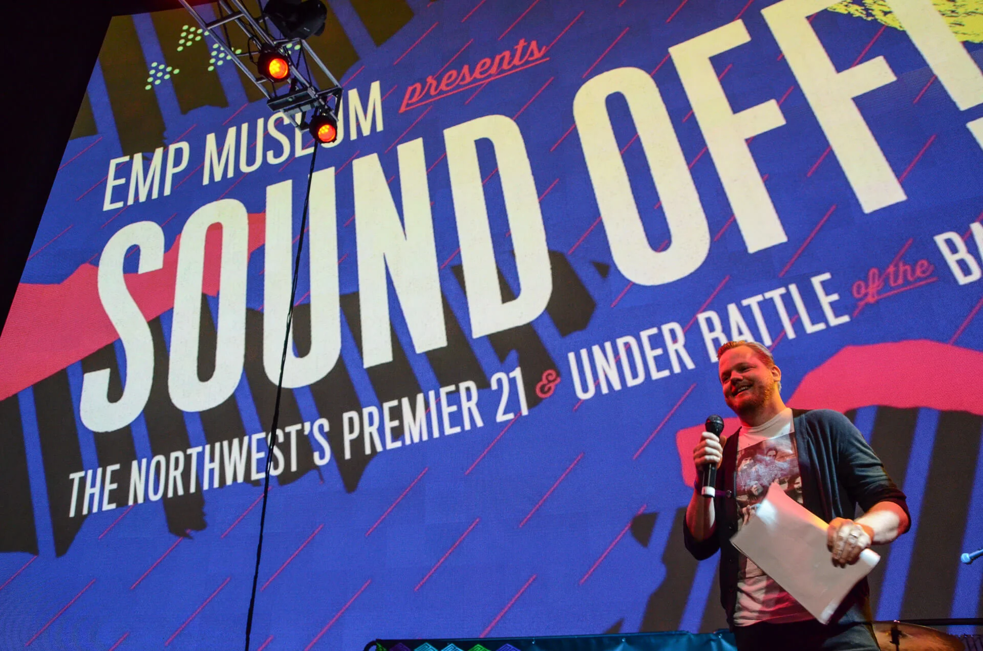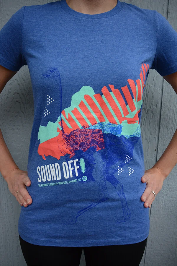 An annual event since 2001, EMP’s Sound Off! supports the all-ages scene by giving artists an opportunity to showcase original music, launch their music careers, and connect with the local music scene. The all-ages fest hosts a competition in which bands battle for the chance to perform at a major regional music festival such as Bumbershoot, Capitol Hill Block Party, and Timber MusicFest. Now in its 14th year, Sound Off! boasts an alumni list that includes big names like The Lonely Forest, Dyme Def and Sol. Project Goals: Sound Off! is a year-long campaign that consists of two phases: 1) call for entries and 2) the actual festival. Given the long timespan of the campaign, I developed two complimentary designs in attempt to keep the visuals interesting and fresh throughout the year. I tend to have a more conservative design style, so this project was the perfect opportunity to let loose and push myself to explore new styles and techniques. The result: a singing ostrich. Execution: I honestly have no idea where this concept came from! I knew I wanted to use an animal as the dominant graphic, but because animals are an overused motif (especially on gig posters), I figured it had better be unique. I went with an ostrich — a rather exotic choice — and ran with the idea, elongating the neck for an extra visual twist. The patterns are a loose reference to maps and help add a contemporary flare to the retro ostrich illustration.